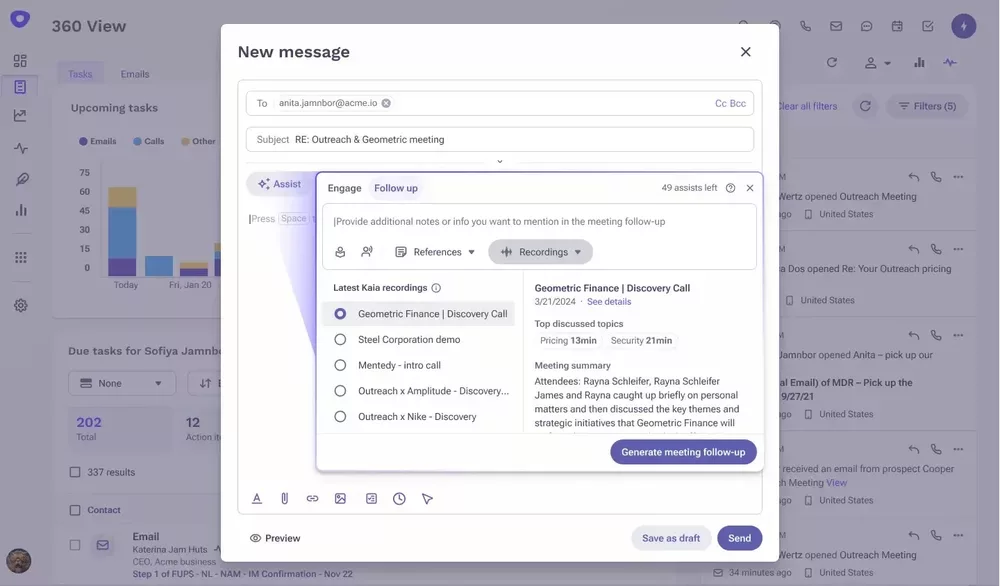 Outreach is one of the best AI tools for automated lead generation in 2025. It’s a leading AI-powered sales execution platform that helps businesses automate prospecting and engagement.