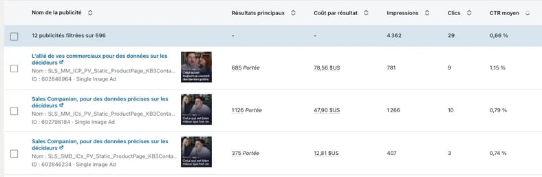 Sur LinkedIn, nos campagnes sur les produits, en particulier les créations statiques "allié n°1", ont connu un démarrage fulgurant. Dans les premiers jours, ces annonces ont généré un CTR de 90 % supérieur à notre moyenne pour les campagnes de Product Value.