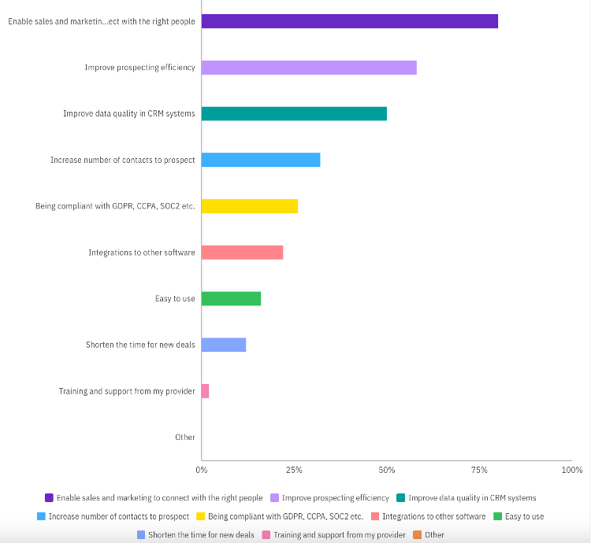 - 72% des personnes interrogées ont cité la qualité des données comme leur plus grand défi avec les outils de sales intelligence.